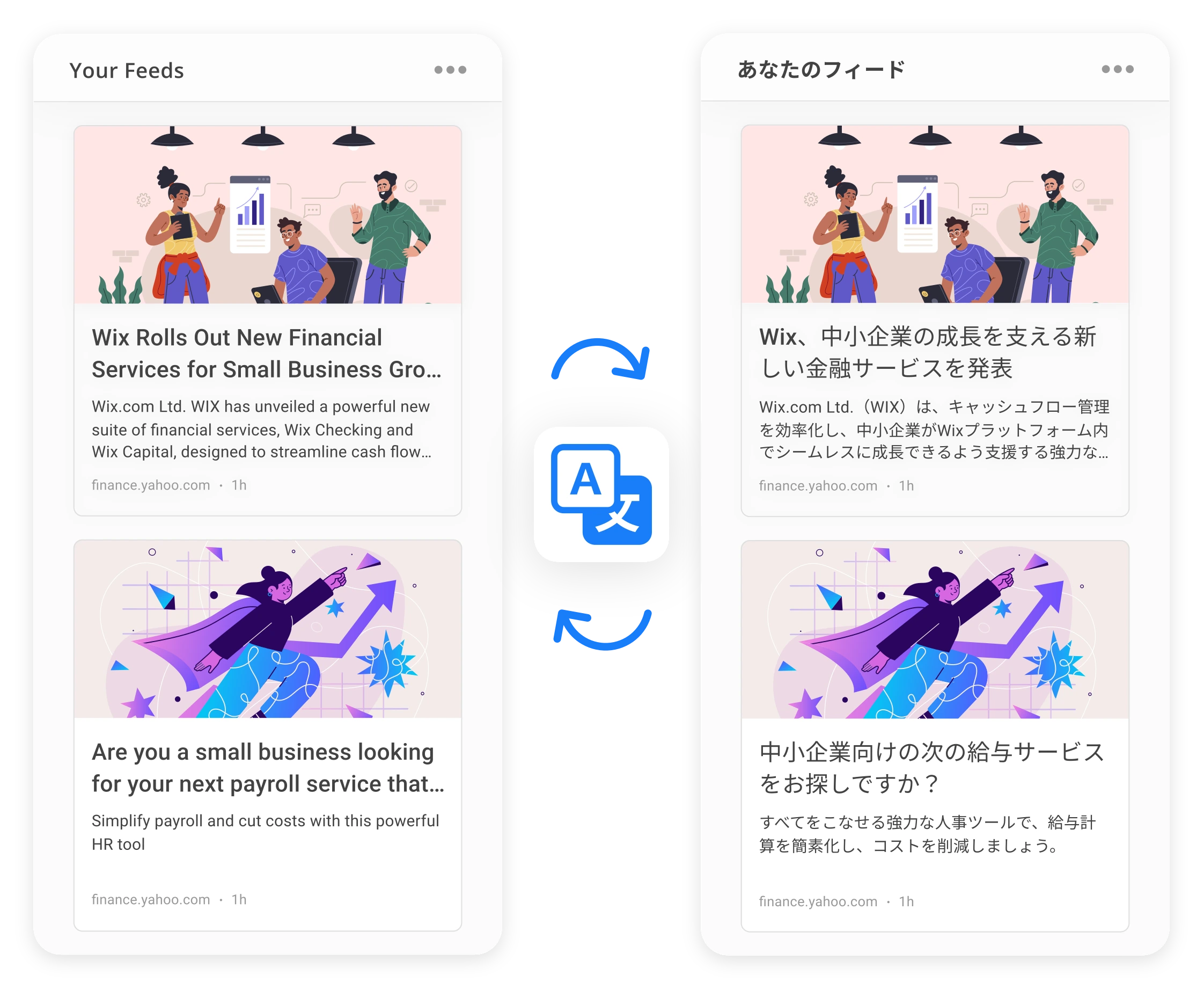 Erreichen Sie globale Leser, indem Sie Ihren Feed in die jeweilige Landessprache übertragen. Ideal für Medien, Blogs und Unternehmen, die in internationale Märkte expandieren.