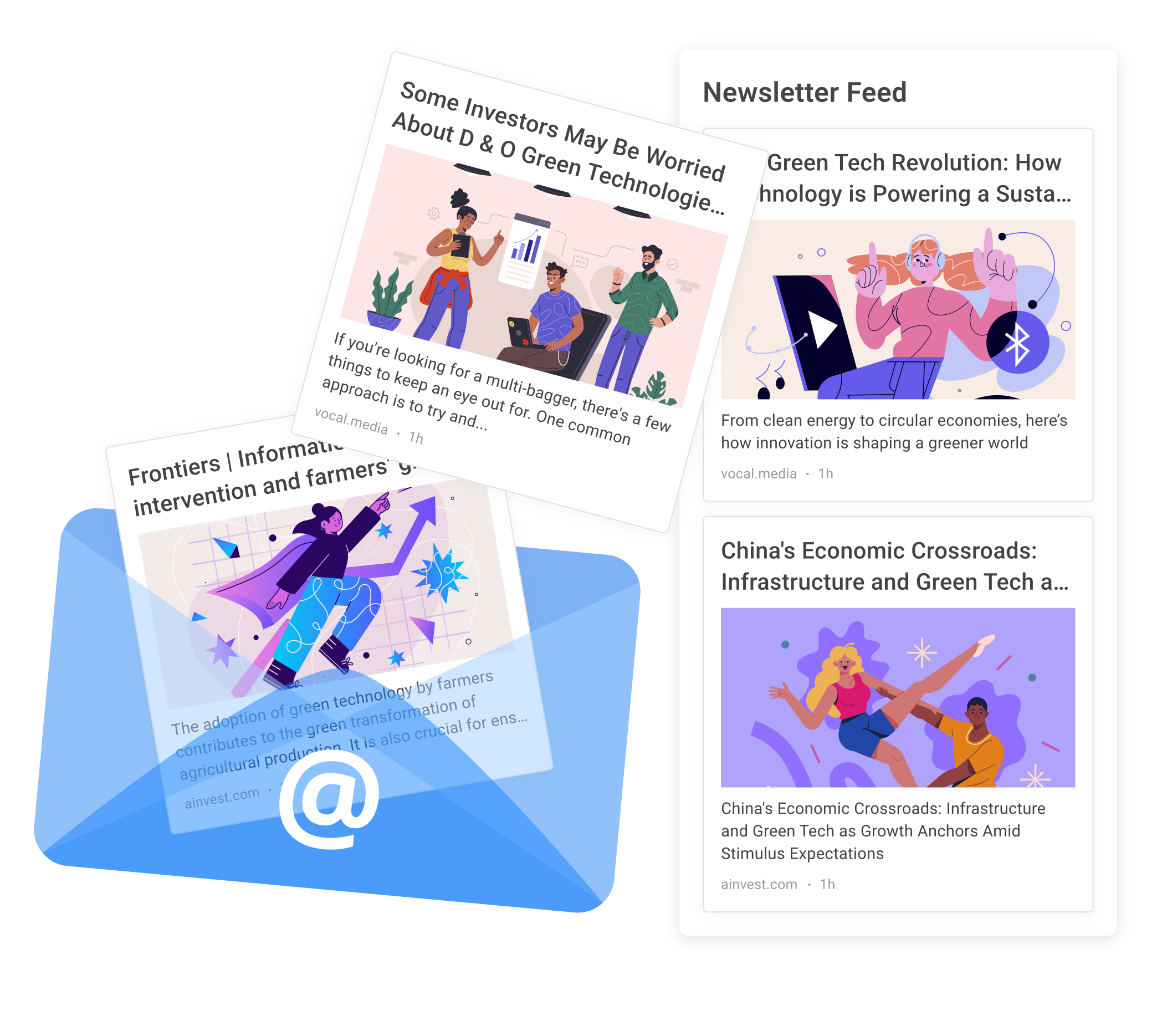 Encontre os principais boletins informativos por categoria ou tópico e crie um feed com um clique.